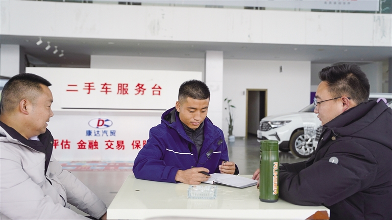 記者在拉薩市堆龍德慶區(qū)康達二手車交易服務中心看到,來咨詢購買汽車的顧客比較多。銷售顧問卓么旦主正在向顧客王先生介紹一輛二手汽車的補貼政策以及車輛售后情況?!拔蚁敫鶕?jù)自己的實際情況,入手一輛性價比較高的二手車?!蓖跸壬f。