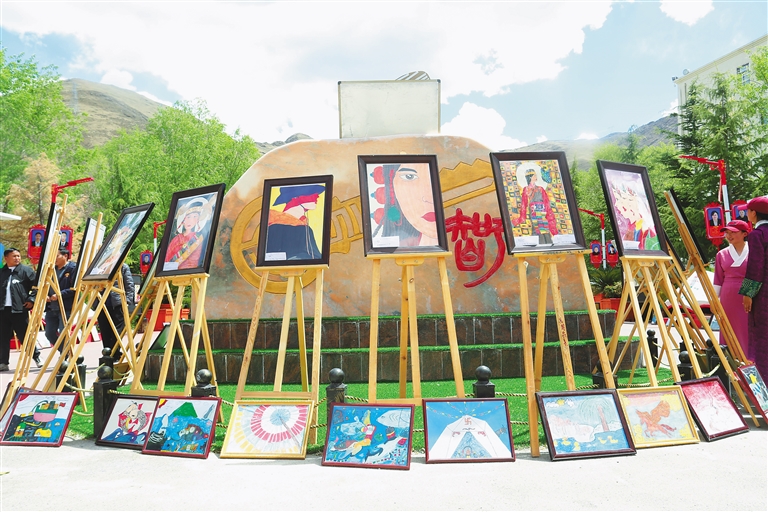 近日,拉薩市墨竹工卡縣中學(xué)舉行了以《我們有“畫”說》為主題的師生繪畫展活動,200余幅作品內(nèi)容涉及民族團(tuán)結(jié)、愛護(hù)環(huán)境、人物等,色彩明快、構(gòu)思巧妙,傾訴著師生們對祖國的深情摯愛。