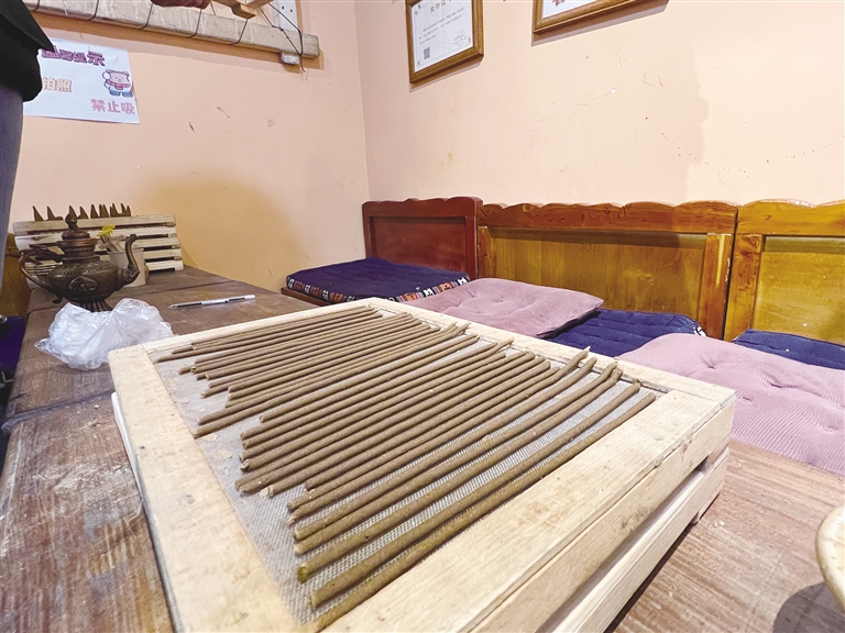 2018年,旦增的唐卡非遺文創(chuàng)體驗(yàn)館在八廓街開業(yè)。在旦增看來,拉薩文化底蘊(yùn)深厚,旅游業(yè)發(fā)達(dá),每天都有來自世界各地的人匯聚在這里,而八廓街作為拉薩古城的核心區(qū),對于文化傳播非常有益。目前,店內(nèi)可體驗(yàn)唐卡繪制、藏香制作,每天可接待40至50位客人。