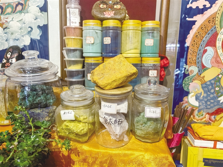 唐卡非遺文創(chuàng)體驗(yàn)館中的傳統(tǒng)礦物顏料。