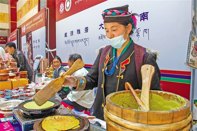 除表演外,日喀則市還同步開展了非遺展示展銷、“非遺獻(xiàn)禮·電商助力直播帶貨”“鑄牢中華民族共同體意識·夏魯文物特展”、分場地自由表演等宣傳活動。
