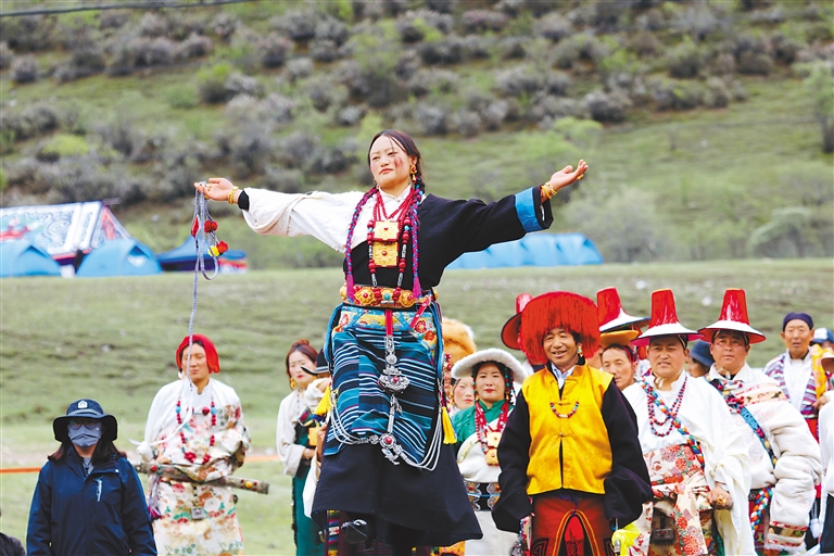恰拉山以北的林周縣境內(nèi),處處是一片湖光山色交相輝映、風(fēng)吹草低見牛羊的美景,熱振國家森林公園、旁多水庫、生態(tài)長廊阿堆溝等旅游景點(diǎn)集中在北部三鄉(xiāng)?!袄_紛四季·多彩林周”活動(dòng)在林周縣唐古鄉(xiāng)藏雄村舉辦。從拉薩出發(fā),驅(qū)車170公里,翻越海拔5000多米的恰拉山。一路上,古柏環(huán)繞,云霧繚繞,漫山遍野的杜鵑花競相綻放,宛如進(jìn)入了世外桃源。