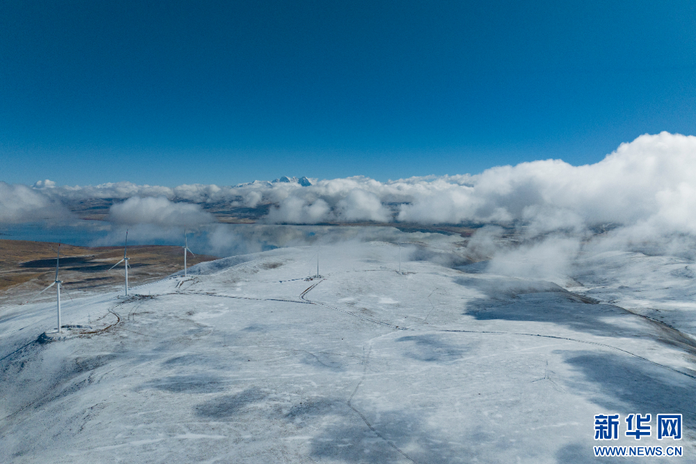 圖為西藏措美哲古風(fēng)電項目一處風(fēng)電機組(無人機照片)。新華網(wǎng) 旦增努布 攝