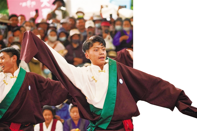 “我們幾個(gè)朋友退休后就加入了鍋莊舞健身隊(duì)伍,每天清晨大家不約而同地來到宗角祿康公園,以激昂的鍋莊開始一天的生活,這樣既能鍛煉身體,又能愉悅心情,大家都特別享受這種狀態(tài)。”觀眾拉姆次仁說。