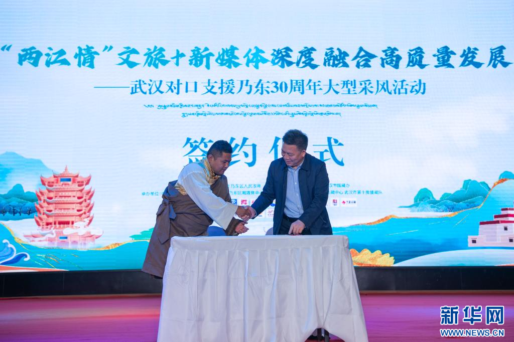 6月20日,啟動儀式現場,武漢廣播電視臺與乃東區(qū)融媒體中心簽署合作協(xié)議。新華網 旦增努布 攝