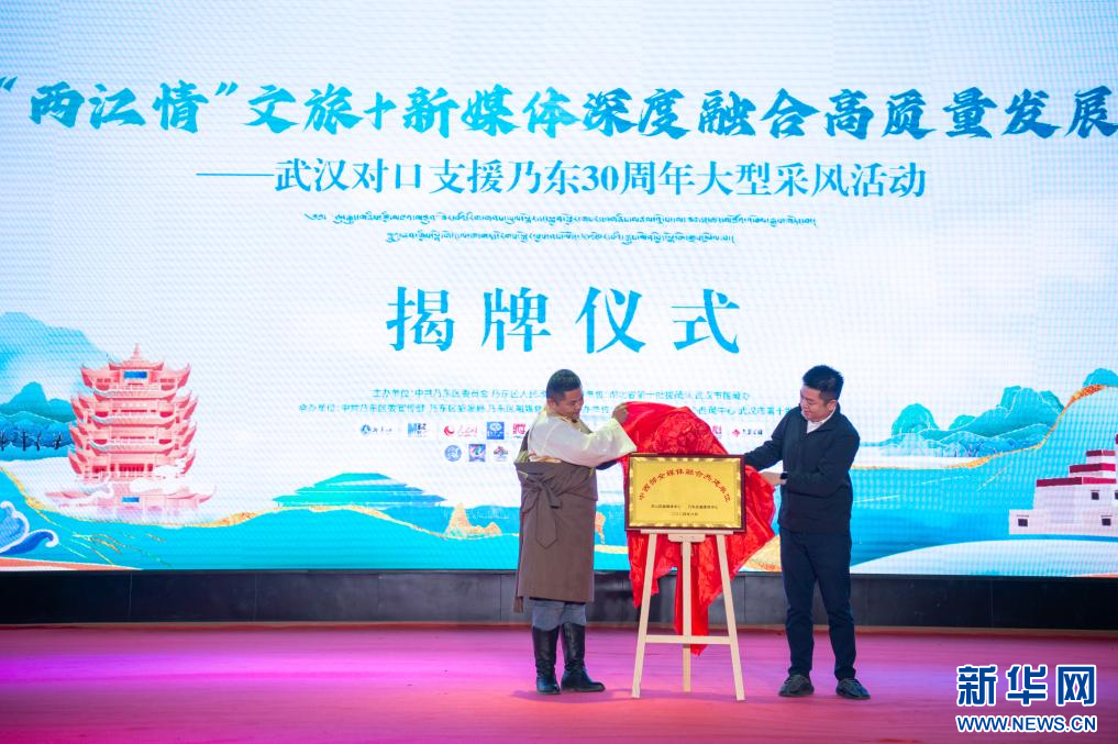 6月20日,啟動儀式現場,洪山區(qū)融媒體中心與乃東區(qū)融媒體中心共同揭牌中西部全媒體融合共建單位。新華網 旦增努布 攝