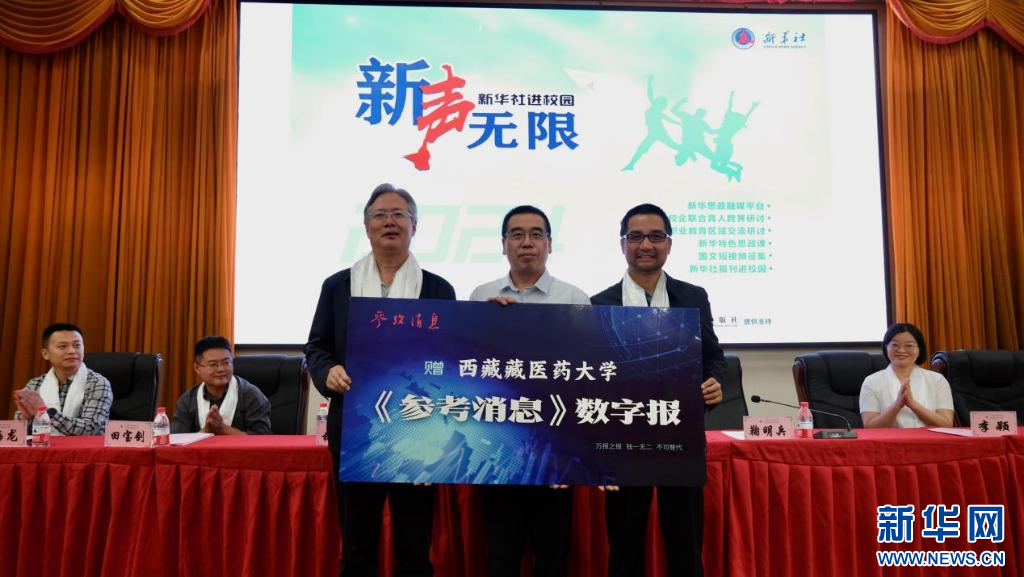 20日,“新聲無(wú)限——2024年新華社進(jìn)校園活動(dòng)”在西藏藏醫(yī)藥大學(xué)舉行。新華社參考消息報(bào)社向西藏藏醫(yī)藥大學(xué)贈(zèng)閱了《參考消息》數(shù)字報(bào)。參考消息報(bào)社總編輯陶德言,新華社西藏分社分黨組成員、副社長(zhǎng)林建楊和西藏藏醫(yī)藥大學(xué)黨委書(shū)記、副校長(zhǎng)鞠明兵致辭,西藏藏醫(yī)藥大學(xué)黨委委員、副校長(zhǎng)于廣琮主持活動(dòng)儀式,參考消息報(bào)社專(zhuān)題室主任田寶劍 與到場(chǎng)師生進(jìn)行面對(duì)面分享交流。