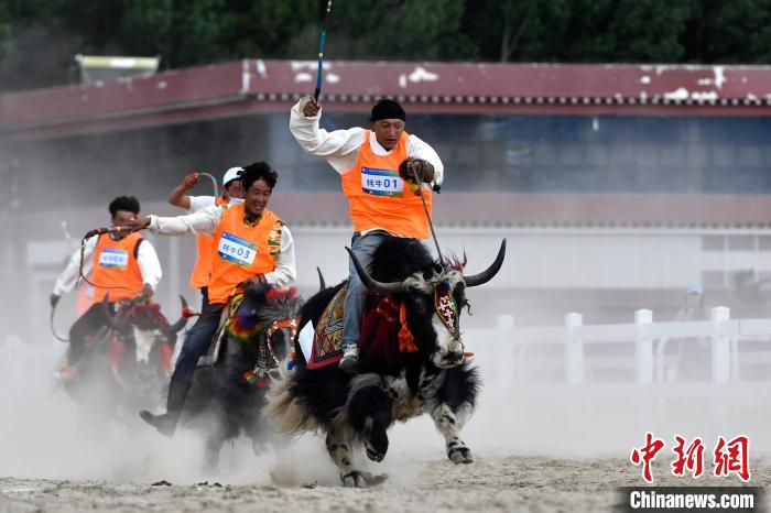 6月23日,拉薩首屆農(nóng)牧民運(yùn)動會上的賽牦牛比賽。李林 攝