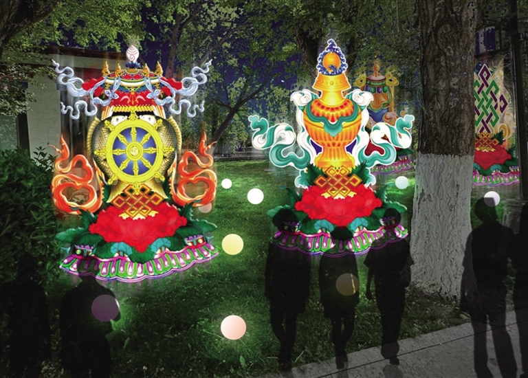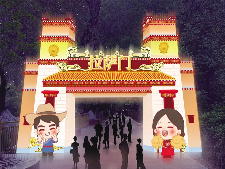 記者了解到,“點亮拉薩——秦淮燈會”在宗角祿康公園東門設(shè)置大型燈組,搭配拉薩的吉祥物牦牛、江蘇的吉祥物麋鹿,燈組用拉薩經(jīng)典配色,搭建飄逸的彩帶雙翼,表達“蘇拉一家親,攜手向未來”的寓意。在公園走廊里、草坪上,還用精致的現(xiàn)代光影作品,安排展示江南煙雨、小橋流水、青磚黛瓦、梅瓶明珠、桃花仙鶴、油傘折扇、上元燈彩等富有江蘇特色的美景雅韻以及具有拉薩特色的建筑和文化精品。