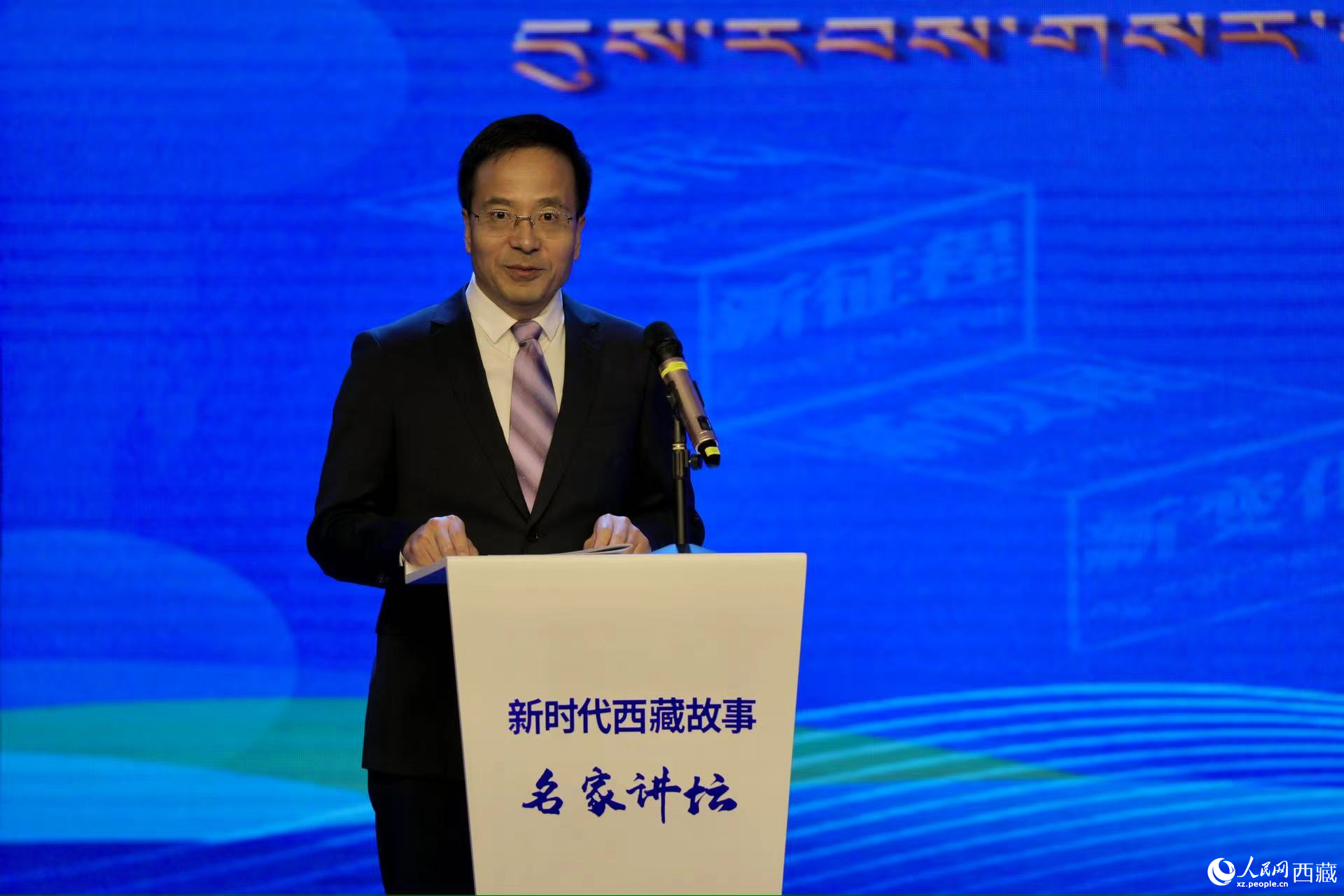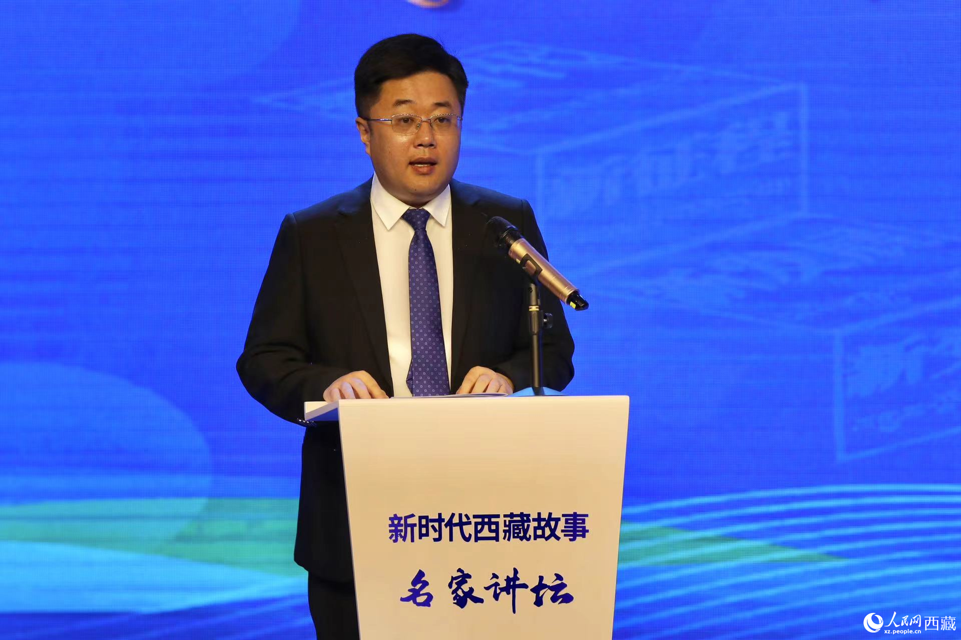 西藏自治區(qū)黨委宣傳部副部長,西藏自治區(qū)社會科學院黨組書記,中央和國家機關第七批、第八批援藏干部孫向軍作主題演講。人民網(wǎng)記者 次仁羅布攝
