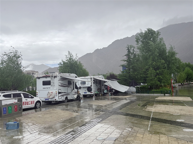 隨著公路的修建,自駕成了不少人的進(jìn)藏方式。游客紛紛表示,旅行的美景都在路上,選擇自駕不但有很多時(shí)間慢慢欣賞沿途美景,還能獲得更多的自由。隨著基礎(chǔ)設(shè)施的日益完善,進(jìn)藏的路上除汽車外,還能看見徒步、自行車、摩托車、電瓶車、挖掘機(jī)等多種多樣的進(jìn)藏方式。在拉薩某處停車場(chǎng)內(nèi),摩托車、房車、自行車規(guī)范停放,各省份牌照比比皆是。自駕而來(lái)的人們?cè)谲嚺源顜づ?,做午飯。相較于飛機(jī)或火車,自駕游多了幾分煙火氣。