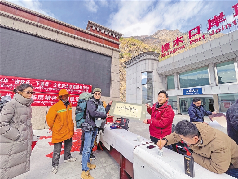 圖為日喀則市文聯(lián)在樟木口岸舉行送新春祝?;顒印?/p>