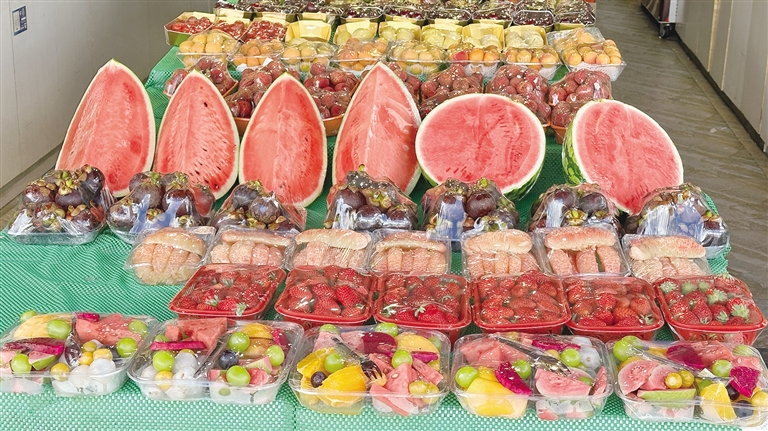 在納金綜合批發(fā)商貿(mào)城內(nèi),時令水果成為了絕對的“主角”,攤位上擺放的各類水果琳瑯滿目,令人目不暇接。過往的居民紛紛駐足挑選,享受這場由水果帶來的味蕾盛宴。“最近新鮮水果上市了,我想嘗嘗看?!崩_市民張女士一邊挑選著西瓜,一邊對記者說,“老板說這種麒麟西瓜無籽皮薄,口感清甜,而且價格親民,我打算買一個回家給孩子嘗嘗。”