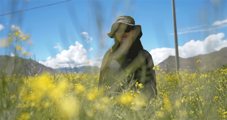 7月初,記者一行驅(qū)車從拉薩出發(fā),在開往錯(cuò)那市的路上,經(jīng)過了瓊結(jié)縣百畝油菜花和隆子縣錯(cuò)落有致的油菜花田。烈日下,油菜花是這片大地的“主角”,是山南市每年盛夏從不缺席的芬芳。一路走來,油菜花肆意地盛開在道路兩旁、村莊里、半山腰……微風(fēng)拂過,花朵搖曳生姿綻放著,從稍遠(yuǎn)處看,俗坡奴村錯(cuò)落分布在黃綠交錯(cuò)的田野中,仿若一幅美麗清新的鄉(xiāng)村田野詩畫。此時(shí),看風(fēng)景的行人紛紛鉆進(jìn)花田中,仿佛是跟油菜花“爭(zhēng)芳斗艷”。