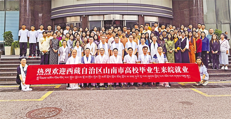 2023年9月,106名西藏籍高校畢業(yè)生組團赴安徽省就業(yè),在全區(qū)實現(xiàn)首個百人以上規(guī)模的“大組團”區(qū)外市場化就業(yè)目標(biāo)。圖為西藏籍高校畢業(yè)生抵達(dá)安徽后合影留念。