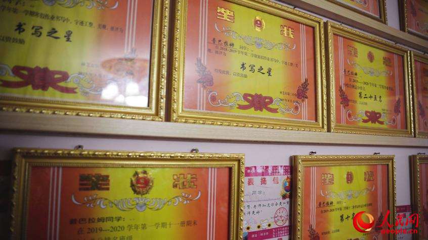 走進另一座潔白的藏式小樓,可以看到達瓦堅參家的墻壁上掛滿了獎狀。上高中的女兒普巴拉姆成績在班里名列前茅,英語單詞比賽拿過一等獎,還獲得了“書寫之星”。兒子普布次仁在學(xué)校的50米短跑中奪得第一名,多次取得運動會的好名次。