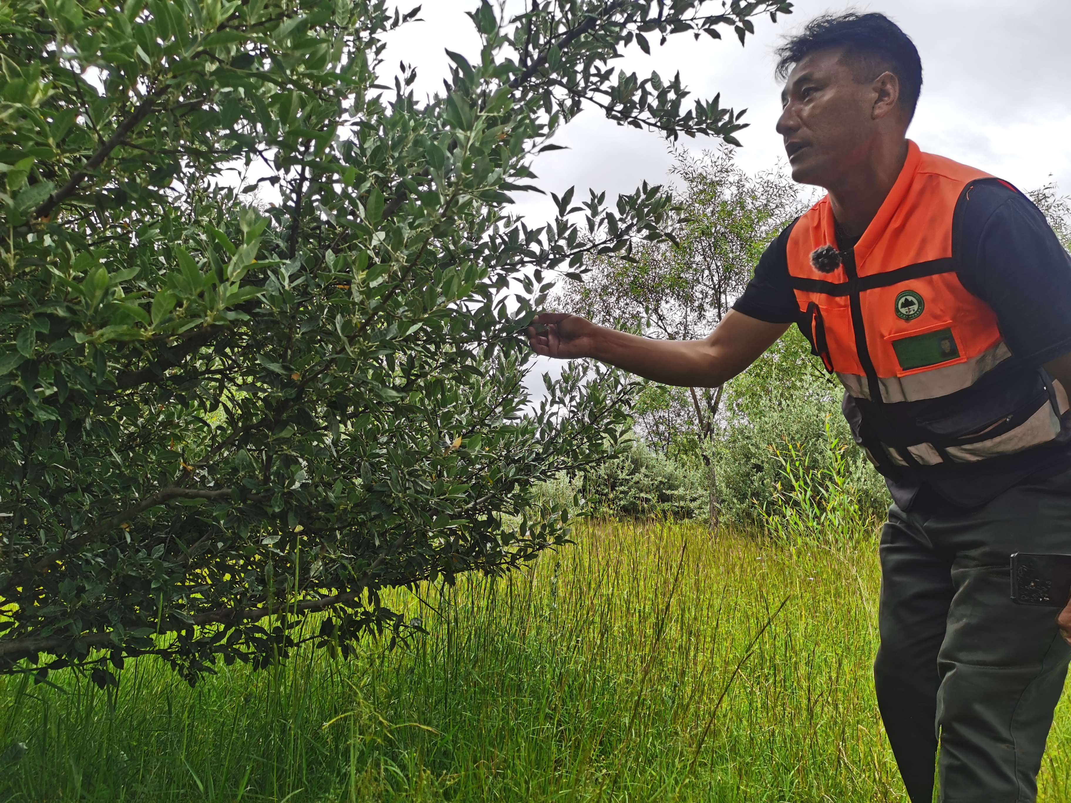 旺扎談到,他很喜歡管護(hù)員這份工作,一干就是18年。這里的一草一木他每天都要查看,有時(shí)能一眼看出哪些樹(shù)木遇到了什么樣的蟲(chóng)害問(wèn)題。一旦有蟲(chóng)害發(fā)生,他會(huì)馬上向上級(jí)主管部門(mén)匯報(bào),及時(shí)跟進(jìn)治療。為了更好做好濕地管護(hù)工作,每年旺扎還會(huì)參加3~4次培訓(xùn),學(xué)習(xí)如何分辨林草病蟲(chóng)害、如何防火等。如今,濕地生態(tài)越來(lái)越好,很多外地的游客慕名前來(lái)。每次看到他們專程來(lái)到這里欣賞美景,拍照打卡,他都會(huì)很開(kāi)心。在旺扎眼里,這兒一年中最美好的季節(jié)莫過(guò)于夏季,此時(shí)到處是綠綠的草、清清的水,還有各色各樣的野花競(jìng)相開(kāi)放。