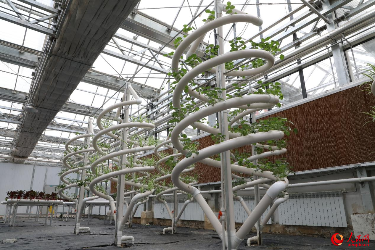 圖為螺旋式管道無(wú)土栽培。人民網(wǎng)記者 次仁羅布攝