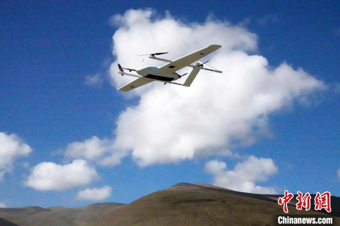 8月1日,作為二次青藏科考一項重要組成部分,珠峰地區(qū)首次開展航空平臺水-熱-碳通量觀測試驗正式啟動,圖為參加試驗任務(wù)的無人機起飛開展觀測。中新網(wǎng)記者 孫自法 攝
