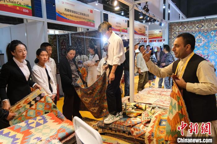 來自阿富汗喀布爾的商人阿明扎伊·穆罕默德·賈(Aminzai Mohammad Jan)主要銷售阿富汗毛毯等手工藝品,這是他第二次進(jìn)藏展銷?,F(xiàn)場,阿明扎伊·穆罕默德·賈十分忙碌,不斷為顧客挑選合適的款式和花色,顧客砍價時,他便掏出手機(jī)播放毛毯的制作過程。他說,期待這次銷量更好。