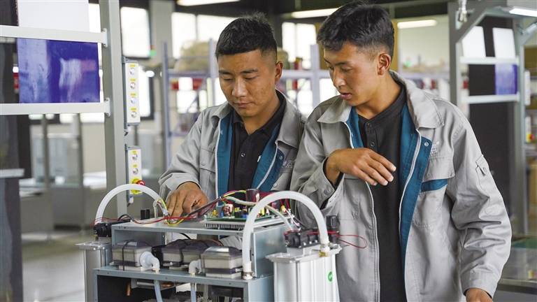 西藏清匠電器科技有限公司執(zhí)行董事劉炎林介紹,公司自2019年落地山南市乃東區(qū)以來,除了吸納本地大學(xué)生就業(yè)外,還堅(jiān)持為當(dāng)?shù)厝罕姶罱ā凹议T口”的就業(yè)平臺(tái),截至目前,已經(jīng)帶動(dòng)當(dāng)?shù)?00余人就業(yè)。