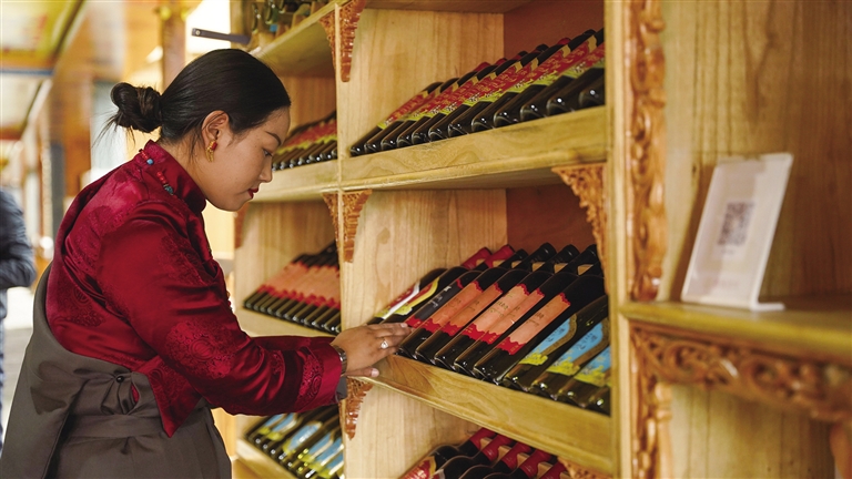 為了讓桑日葡萄酒產(chǎn)品走出去,湖南省援藏工作隊(duì)牽線搭橋,利用葡萄酒招商會(huì)、拉薩藏博會(huì)、北京中小企業(yè)年會(huì)及招商引資會(huì)等平臺做好宣傳推介,并幫助其成功上線湖南省消費(fèi)幫扶公共服務(wù)平臺,形成了線上線下一體的營銷模式。2023年,促成帕竹酒莊與湖南中車、岳陽市供銷社等單位簽訂定向購銷合同,累計(jì)帶動(dòng)桑日葡萄酒銷售額達(dá)230萬元。