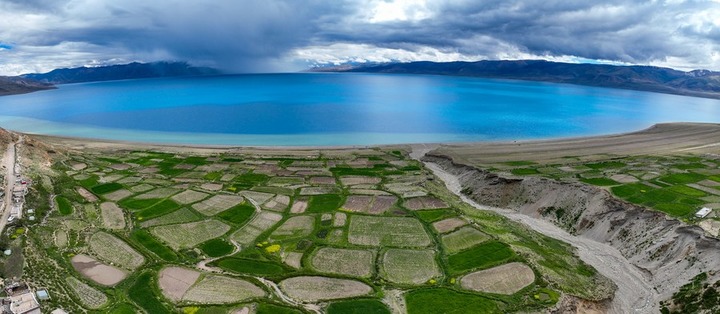 位于尼瑪縣的當(dāng)惹雍錯(cuò)位于古象雄文化的中心地帶,是西藏面積第四大湖,也是我國形成最早的內(nèi)陸湖之一,常年在群山間顯現(xiàn)一片靜謐的深藍(lán)。2023年12月,它被評(píng)為國家AAAA級(jí)旅游景區(qū),本月即將掛牌迎接游客。