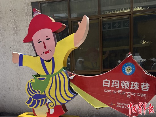 8月6日,西藏自治區(qū)山南市乃東區(qū)昌珠鎮(zhèn)扎西曲登社區(qū),以藏戲傳承人名字命名的街巷。白瑪頓珠是雅礱扎西雪巴藏戲的傳承人,成功恢復(fù)了中斷20多年的雅礱扎西雪巴藏戲表演技藝,對(duì)藏戲藝術(shù)的傳承和發(fā)展作出了重要貢獻(xiàn)。中青報(bào)·中青網(wǎng)記者 余冰玥/攝