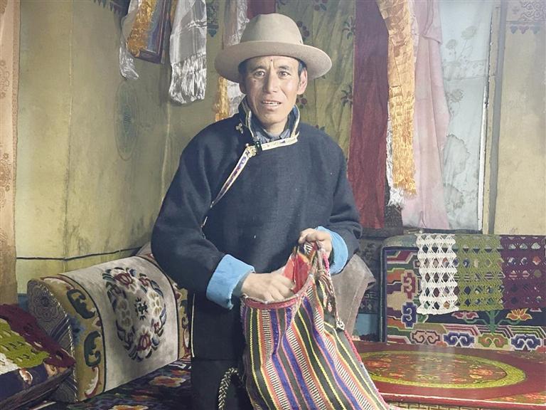 放牧巡邊途中的經(jīng)歷,格桑覺得只是日常的事情,并沒有什么值得講述的。不過(guò),他也有特別珍視的東西。格桑特意走進(jìn)另一間屋子,捧出一個(gè)略顯舊色的布袋。他小心打開袋子,里面是他珍藏的一面面國(guó)旗。