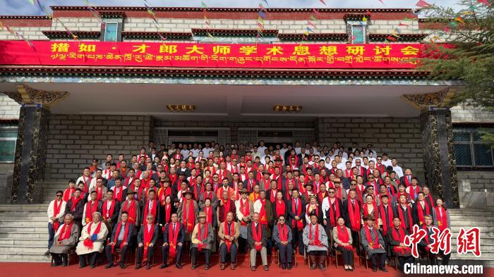 圖為參與藏醫(yī)藥學(xué)家措如·才郎大師學(xué)術(shù)思想研討會(huì)的藏醫(yī)藥專(zhuān)家學(xué)者合影留念。謝牧 攝