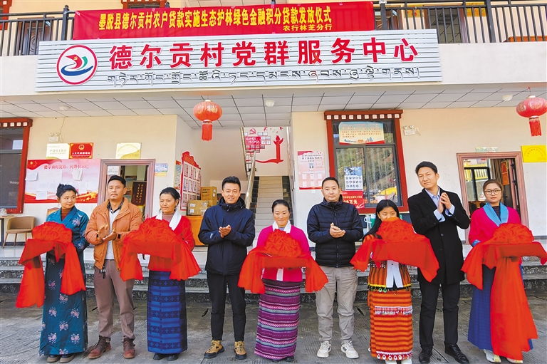 圖為農(nóng)行林芝分行墨脫縣支行推出生態(tài)護(hù)林綠色金融積分貸款發(fā)放儀式現(xiàn)場。