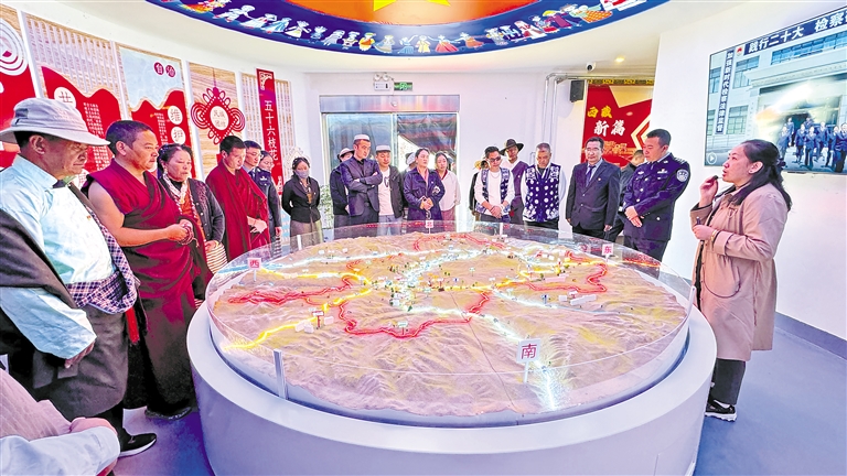 9月14日,拉孜縣曲下鎮(zhèn)以鑄牢中華民族共同體意識為主線,舉辦首屆“格桑花開石榴紅·凝心鑄魂新征程”運動會暨“迎中秋、慶團(tuán)結(jié)”茶話會?!D為各民族群眾代表參觀拉孜縣鑄牢中華民族共同體意識教育館。