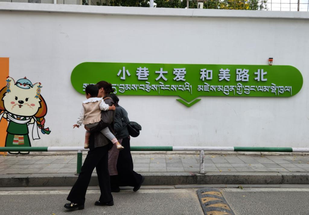 配合路政部門(mén)把洽瑪崗路改為單行道,讓街道靜下來(lái);協(xié)同三大運(yùn)營(yíng)商,把街上縱橫交錯(cuò)的“飛線”收進(jìn)沿街橋架,還行人一片藍(lán)天;對(duì)接專業(yè)設(shè)計(jì)團(tuán)隊(duì),以本地犬種拉薩阿普索犬設(shè)計(jì)社區(qū)IP形象“嘎嘎”(意為快樂(lè)),街角的墻繪、樹(shù)上的引導(dǎo)牌、商戶的門(mén)臉上都能看到這只可愛(ài)的小狗……社工旦增晉美對(duì)社區(qū)的變化如數(shù)家珍。