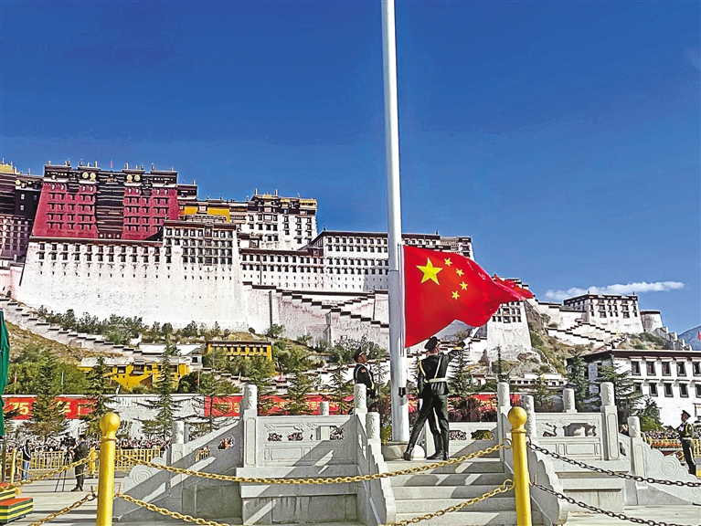 滿心中國紅、拳拳愛國情。10月1日上午,西藏舉行莊嚴的“升國旗、唱國歌”儀式,熱烈慶祝中華人民共和國成立75周年。自治區(qū)黨政軍領(lǐng)導與各族各界干部群眾代表,共同唱響禮贊新中國、奮進新時代的主旋律,共同祝福偉大祖國繁榮昌盛,祝福西藏的明天更加美好。