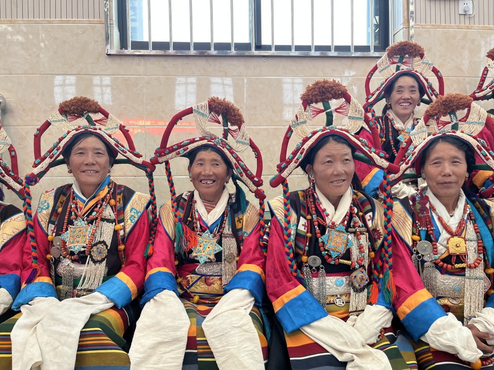 現(xiàn)在的諧欽隊(duì)共有67名成員,30歲以下的年輕人有8人,云丹卓瑪老阿媽也如愿收了一名“關(guān)門弟子”曲桑。她是諧欽隊(duì)的現(xiàn)任隊(duì)長,從事諧欽已有20多年,后被評為薩爾諧欽市級非遺傳承人。“我們力求在保留薩爾諧欽原汁原味的基礎(chǔ)上,在舞步與服飾上有所改進(jìn),更好地展現(xiàn)當(dāng)代農(nóng)牧民的風(fēng)采。”她說。