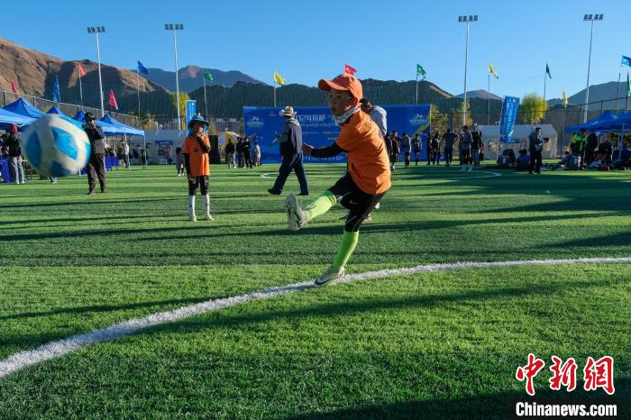 足球運(yùn)動(dòng)在拉薩擁有廣泛的基礎(chǔ),圖為10月26日下午,一群孩子在2024拉薩“村超”足球聯(lián)賽現(xiàn)場練習(xí)射門。中新社記者 江飛波 攝