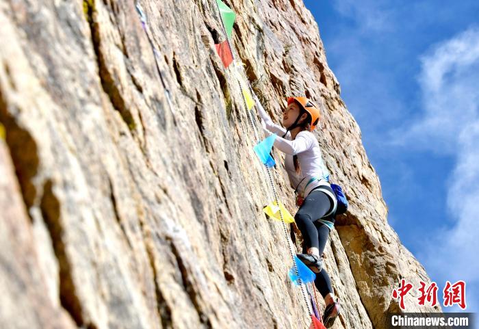 11月17日,2024年西藏自治區(qū)攀巖自然巖壁公開賽決賽在拉薩市城關(guān)區(qū)奪底街道吉倉(cāng)自然巖壁場(chǎng)地舉行。本次賽事共有來自全國(guó)的55名選手參賽,分預(yù)賽和決賽兩輪。圖為參賽選手劉亞豪決賽中。中新社記者 李林 攝