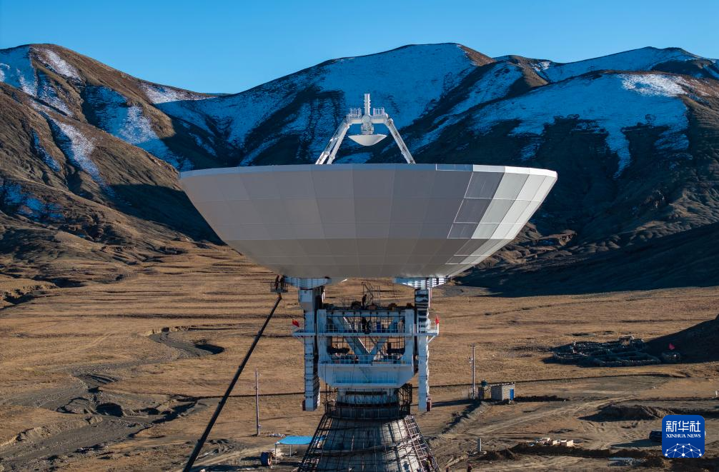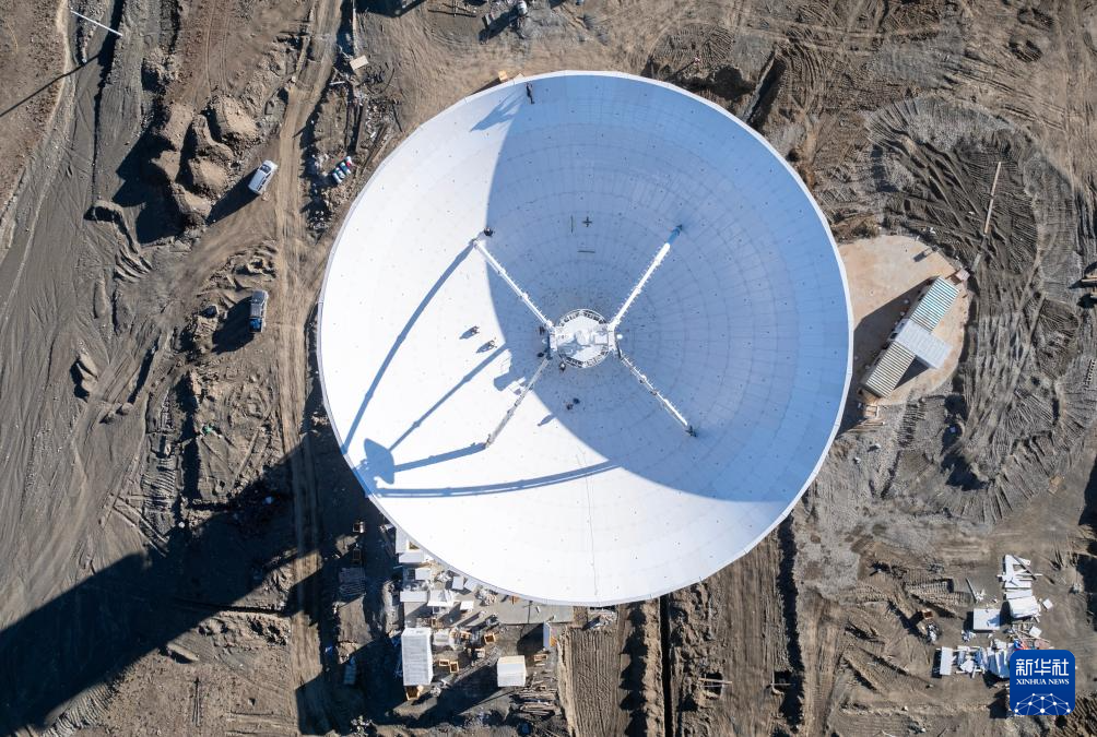 建設中的日喀則40米射電望遠鏡(無人機照片,11月7日攝)。新華社記者 姜帆 攝