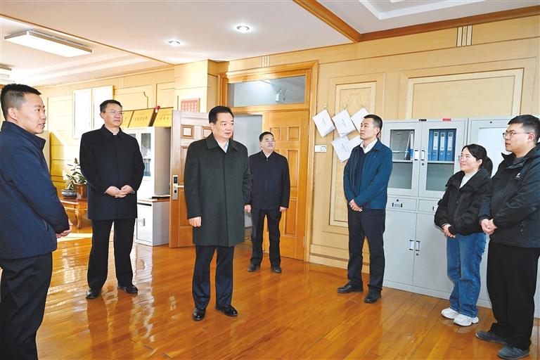 12月2日上午,自治區(qū)黨委書記王君正在自治區(qū)黨委辦公廳系統(tǒng)調研。這是王君正在自治區(qū)黨委辦公廳法規(guī)處與工作人員親切交流。 本報記者 李洲 攝
