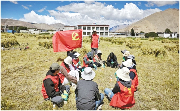 圖為薩爾鄉(xiāng)開展“助農(nóng)秋收”志愿活動(dòng)。