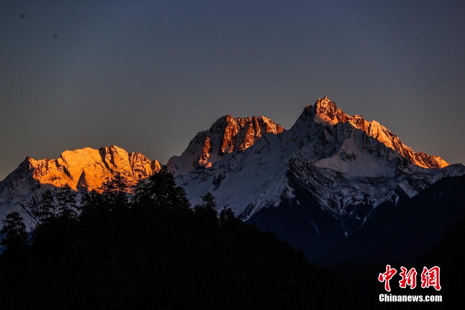 12月17日,夕陽照在西藏自治區(qū)林芝市波密縣境內的雪山頂上,出現“日照金山”的景象。林芝被譽為“雪域江南”,境內雪山巍峨、峽谷幽深、森林廣布,生態(tài)環(huán)境極為純凈,兼具山、水、林、草、湖、雪、冰之美,是絕佳的旅游勝地。也是川藏公路上風光最美的一段。中新社記者 貢嘎來松 攝