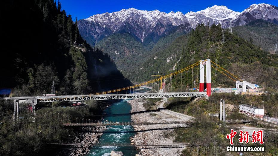 12月17日,西藏自治區(qū)林芝市波密縣境內的通麥大橋。林芝被譽為“雪域江南”,境內雪山巍峨、峽谷幽深、森林廣布,生態(tài)環(huán)境極為純凈,兼具山、水、林、草、湖、雪、冰之美,是絕佳的旅游勝地。也是川藏公路上風光最美的一段。(無人機照片)中新社記者 貢嘎來松 攝