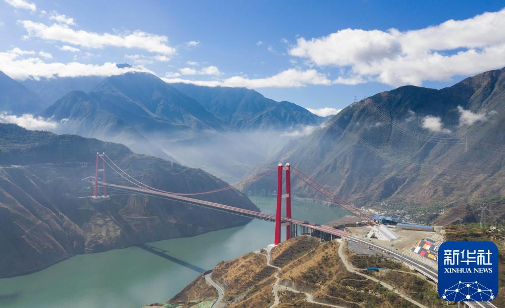 2019年10月16日拍攝的雅康高速瀘定大渡河大橋(無(wú)人機(jī)照片)。該橋2018年底建成通車。新華社記者 江宏景 攝