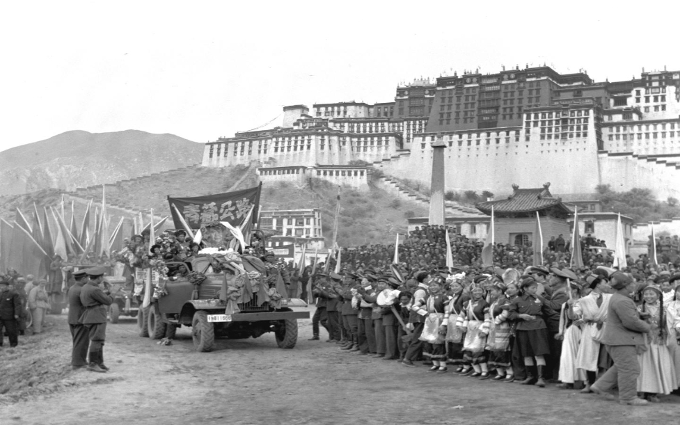 1955年1月11日,康藏、青藏公路的通車典禮在拉薩舉行。通往祖國(guó)邊疆西藏的兩條大動(dòng)脈——康藏公路和青藏公路,已于1954年12月25日同時(shí)通車。 新華社記者劉詩(shī)臨、任用昭攝