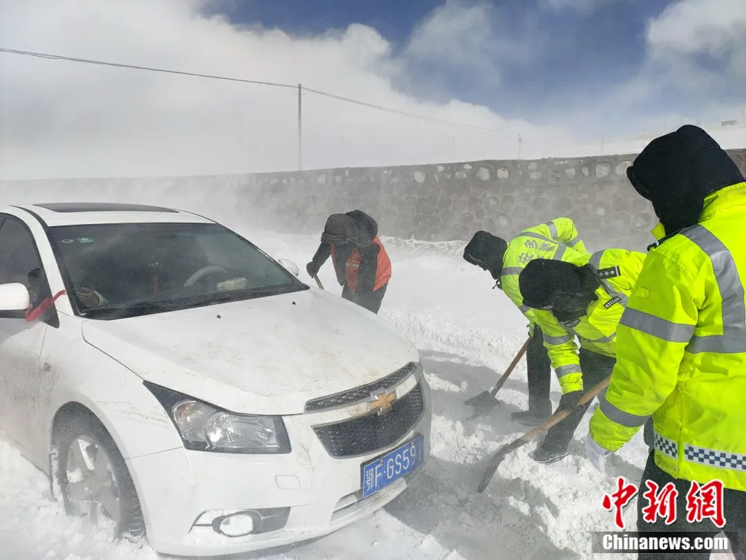 中新社記者們跟隨安多縣公安局交警大隊秩序中隊中隊長達(dá)娃云旦的執(zhí)勤小隊,借著采訪算是體驗了一把“生命線”上的特殊執(zhí)勤。