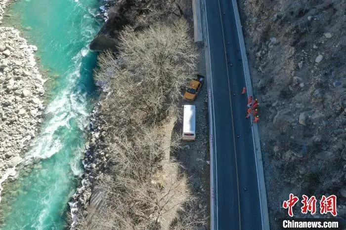 圖為道班工人在公路上巡護。(無人機照片)中新社記者 貢嘎來松 攝