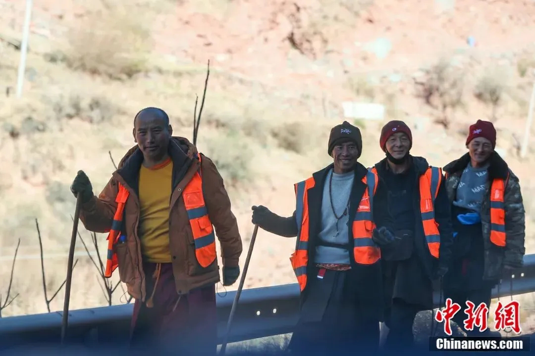 在西藏林芝市工布江達(dá)縣金達(dá)鎮(zhèn),當(dāng)?shù)谝豢|陽光還未灑向路面,金達(dá)工區(qū)工區(qū)長巴桑次仁的身影便已出現(xiàn)在公路上,開始了一天的巡查護路。從18歲開始,這條蜿蜒在群山之間的道路他已經(jīng)巡護了33年。