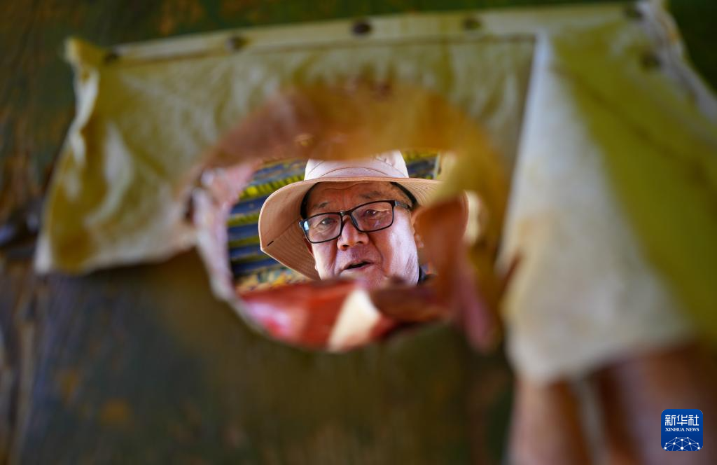 布達(dá)拉宮管理處維修科工作人員普瓊在制作修繕?biāo)璧哪緲?gòu)件(12月4日攝)。新華社記者 晉美多吉 攝