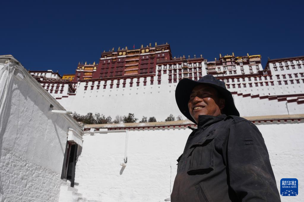 布達(dá)拉宮管理處維修科工作人員扎西在巡查(12月4日攝)。新華社記者 晉美多吉 攝