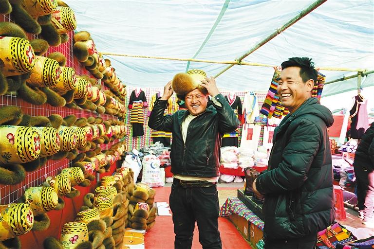 為何如此熱鬧?原來這里是體驗周的“重頭戲”——冬季物資交流會?,F(xiàn)場,從服裝服飾到農(nóng)特產(chǎn)品,從肉類食品到民族手工藝品,應(yīng)有盡有,可滿足不同消費者的需求。